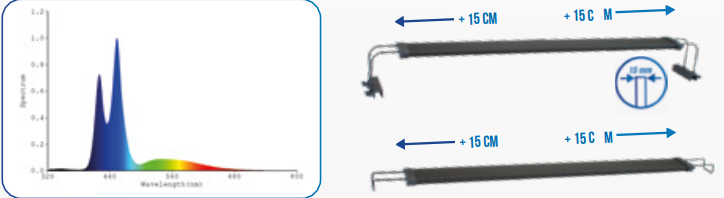 AMTRA LED SYSTEM REEF est un système d’éclairage complet pour les aquariums marins. Grâce à son niveau de protection élevé (IP67), il peut être utilisé aussi bien dans des réservoirs ouverts que dans des aquariums fermés. MINUTERIE et DIMMER INCLUS pour programmer le cycle solaire quotidien de votre aquarium. Le KIT dispose également de deux types différents de supports de barre LED. La température de couleur et l’intensité de l’éclairage sont entièrement personnalisables sur 3 canaux différents (Blanc 8000K + Bleu profond 460nm + Bleu violet 420nm). Corps en aluminium et ABS pour donner plus de solidité au produit!