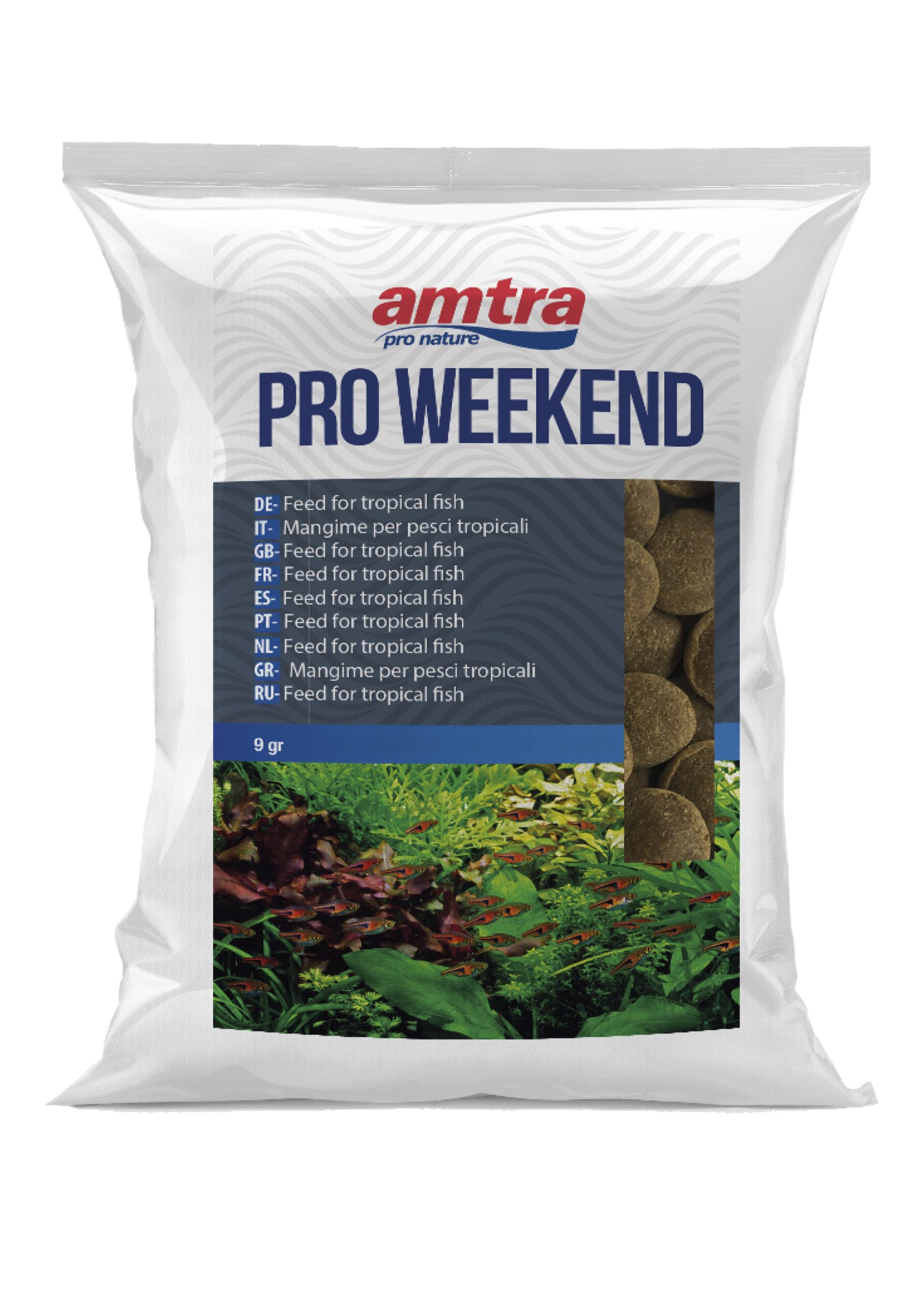 Aliments complets pour des poissons tropicaux. Pastilles Weekend.